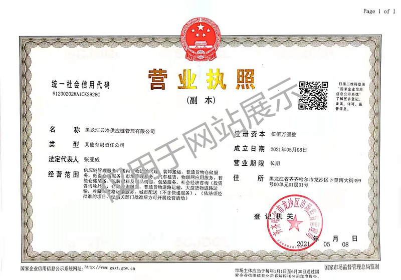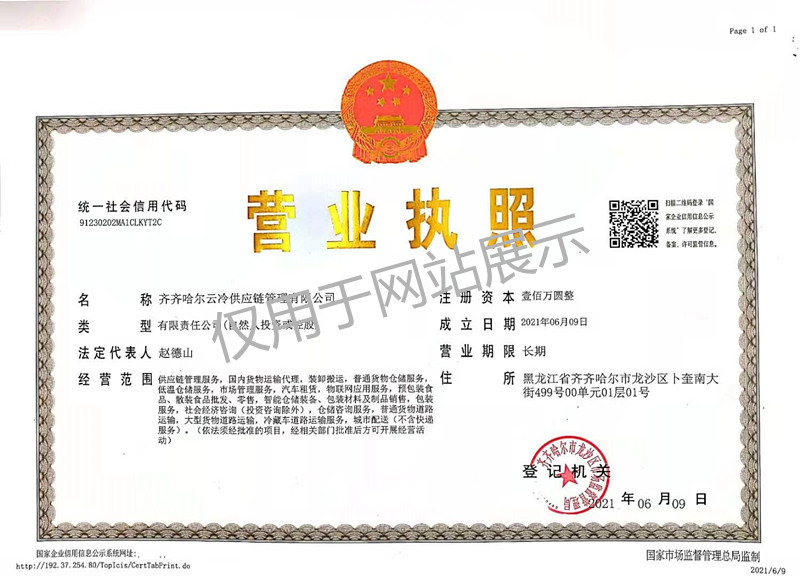 與中通云冷網絡科技(浙江)有限公司合資組建黑龍江云冷供應鏈管理有限公司,在全國性冷鏈倉干配網絡——藍網的統一布局下,負責黑龍江省內各地級市及鄉鎮支線網點組建和加盟、運營管理,在哈爾濱和齊齊哈爾設立分撥倉,分別負責黑龍江省東部地區、西部地區及內蒙地區網絡配送,實現覆蓋全省物流配送網絡,勇占市場先機。